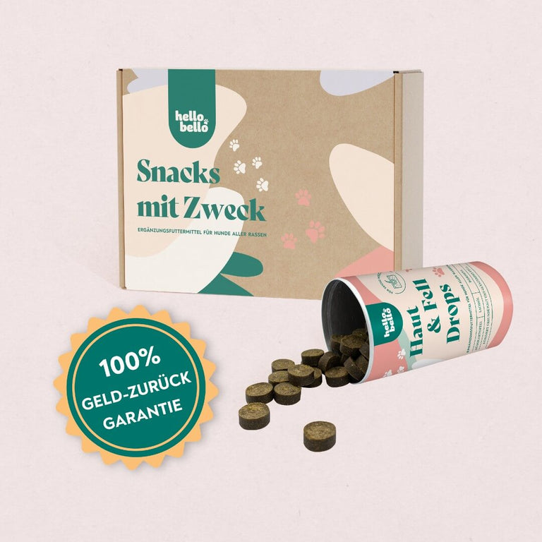 Der Zweck dieser Hundekekse ist es, die Haut und das Fell deines Hundes dauerhaft zu unterstützen und zu fördern. Im Falle einer akuten Erkrankung können sie eine sinnvolle Ergänzung sein, ersetzen aber keine Medikamente und den Besuch beim Tierarzt.