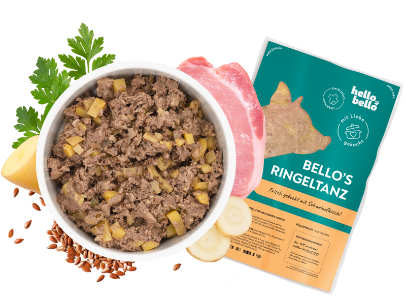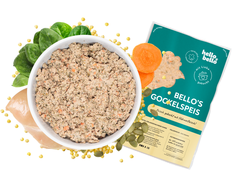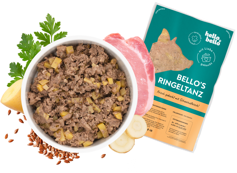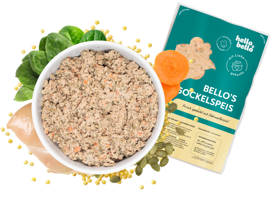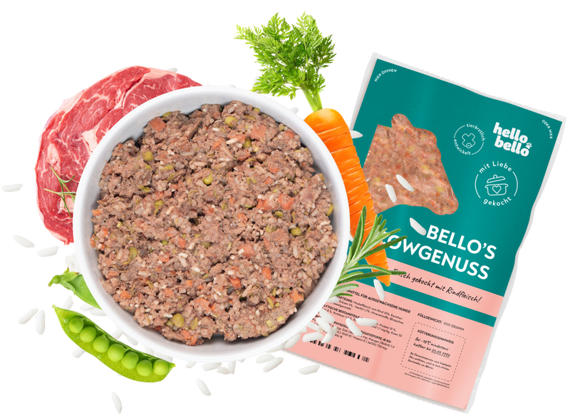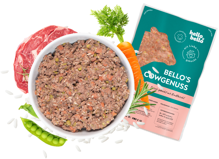 Mit unseren HelloBello Menüs haben wir ein völlig neues Ernährungskonzept für Hunde entwickelt. Frisch gekochtes Hundefutter heißt für uns: Regionale, hochwertige Zutaten werden schonend zubereitet und dann tiefgekühlt an deine Haustür geliefert. Vom Kochtopf bis in den Futternapf vergeht viel weniger Zeit als bei herkömmlichem Futter. Deswegen muss unser Futter auch nicht jahrelang haltbar sein und kommt ganz ohne Konservierungsstoffe aus. Die bringen der Gesundheit deines Hundes sowieso nichts.