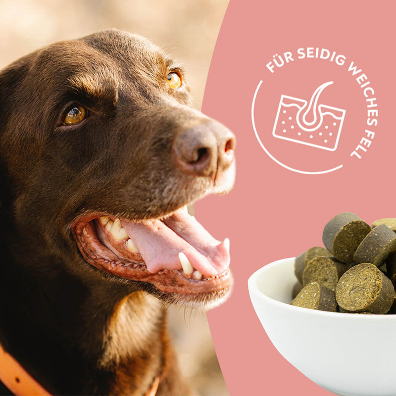 Wenn dein Hund seine Snacks regelmäßig bekommt, solltest du spätestens nach etwa 6 Wochen eine Verbesserung sehen. Das Ziel ist es, die Gesundheit deines Hundes langfristig zu unterstützen, deswegen ist es wichtig die Snacks nicht nur wenige Tage zu geben.